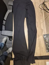 Een paar zwarte leggings van elastisch materiaal. Geen merk zichtbaar. Geen schade op te merken.